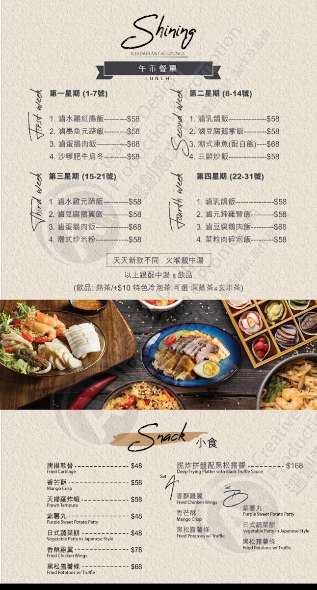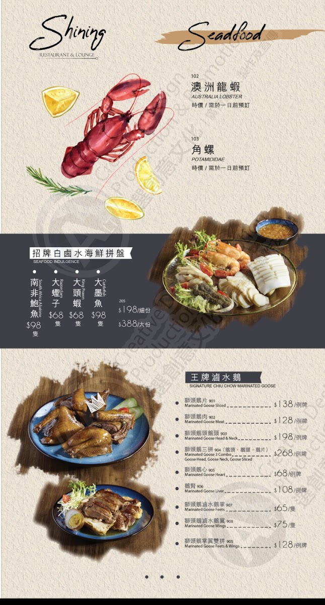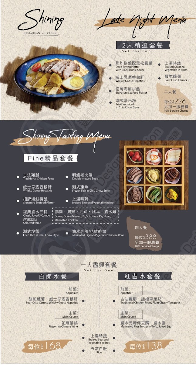 The menu at Shining Bar & Restaurant in Causeway Bay offers a tantalizing array of flavors, making it a standout destination for both locals and visitors. The restaurant’s focus is on high-quality ingredients and bold flavors, which is evident in their signature dishes. Deep-Fried Fish Skin with Salted Egg Yolk is a crispy and indulgent treat, perfectly paired with the rich, savory taste of salted egg yolk. Another must-try is the Tofu with Spiced Salt, a delightful combination of smooth tofu and aromatic, spiced salt that creates a unique contrast in texture and flavor. For those seeking something adventurous, the Marinated Pig's Tongue is a standout choice, offering a tender and flavorful bite that will surprise and satisfy. Each dish reflects the restaurant's dedication to innovative Chinese cuisine with a twist, making Shining Bar & Restaurant a memorable dining experience.